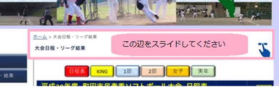 大会日程など、右側の部分が表示されないケースがありますが、